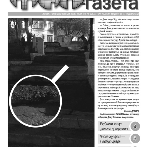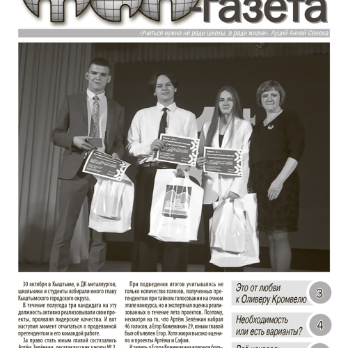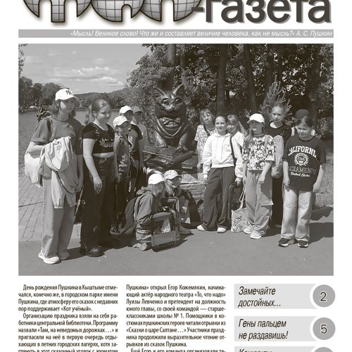 «ТиН-газета» – газета для детей и подростков Кыштымского городского округа, издается с ноября 1996 года. Выходит ежемесячно (в учебные месяцы), формат А4, черно-белая, 8 полос. Тираж – 500 экземпляров, распространяется бесплатно. Наша миссия – объединение информационного пространства учреждений образования... Читать еще