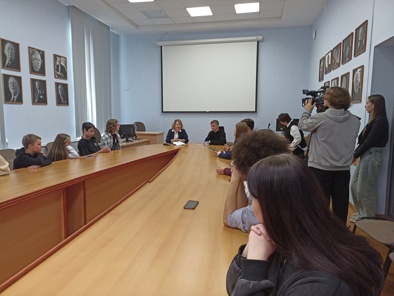 А затем отправились на встречу с главным редактором телерадиокомпании Н.В. Тучковой, Будущие акулы пера узнали, что такое телевизионный текст и видео, как выстроена работа в кадре. Юнкоры на практике попробовали себя в разных медийных ролях, самые смелые смогли записать в студии ЮУрГУ-ТВ подводку к своей новости, «найденной» тут же, в стенах университета.