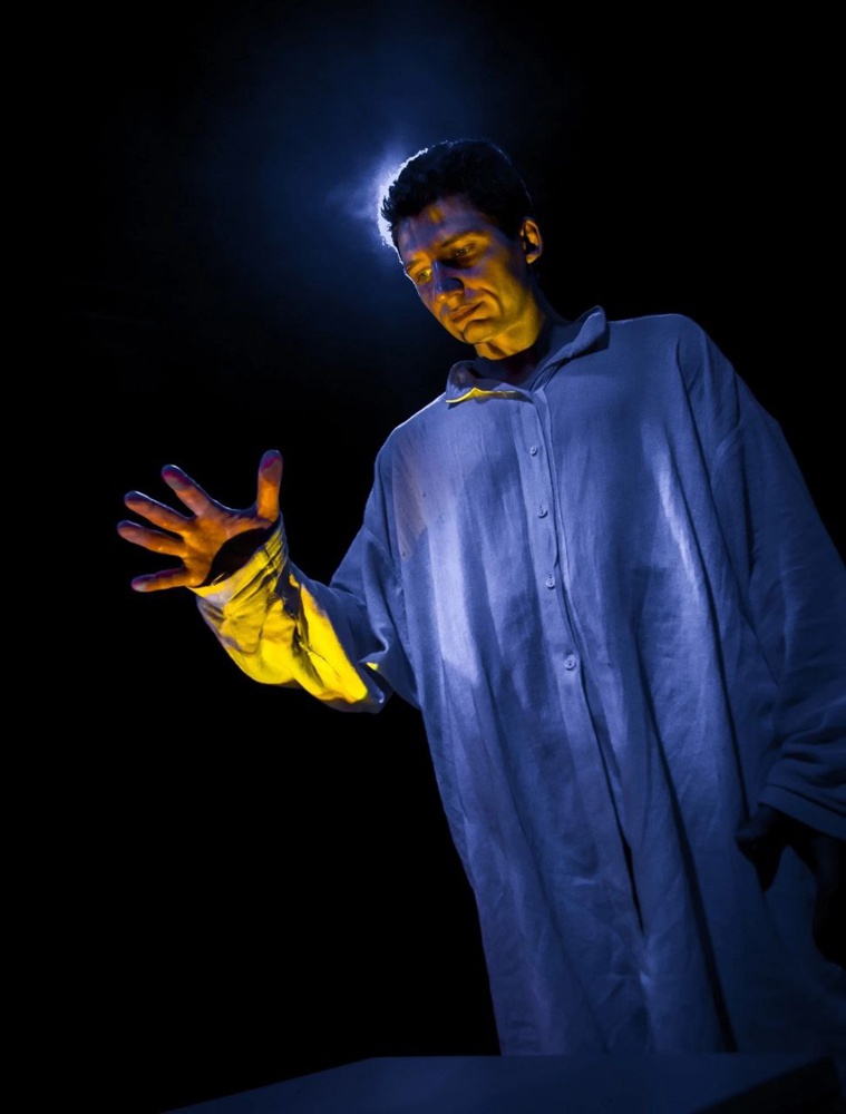 Из названия, конечно же, кажется, что Ван Гог – центральная фигура спектакля. Но Арто, если называть иронично, выступает «серым кардиналом» современного театра. Его мало кто знает при том, что он серьезное влияние оказал на европейский театр и даже на русский театр. И продолжает оказывать. Можно сказать, современный европейский театр (а Россия – часть Европы) воплотил идеи Арто. И поэтому в спектакле Арто играет не последнюю роль. Он не только персонифицированно присутствует на сцене, его мысли и идеи присутствуют в спектакле. В том числе звучат отрывки эссе «Ван Гог. Самоубитый обществом». Здесь вспоминается фраза гениального мыслителя современности Мераба Константиновича Мамардашвили, который всегда интересно, четко, остро, свежо описывал глобальные проблемы человечества. Он говорил: «Мысль может проявляться в разных формах». Его лекция «Метафизика Арто» посвящена формам выражения мысли. Мысли Ван Гога присутствуют в чудесных живописных работах. А мысли Арто выражаются не только через театральное искусство, но и через прекрасные эссе, поэзию, пьесы и романы.