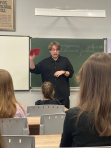 В 10 гуманитарном классе прошла встреча с поэтом, выпускником физико-математического факультета лицея 2014 года Максимом Аксёновым. Псевдоним творца – Фридрих Фрайтаг. Под ним он ведёт телеграм-канал, в котором он публикует свои стихотворения. 16 февраля Аксёнов побывал в 10 гуманитарном классе, рассказал о себе и поделился своим творчеством.